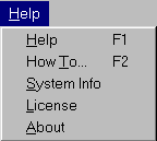 The Help menu provides access to the Help files, How-To video clips and system, license and version information.