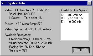 System Info Dialog Box
