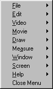 The main menu of VIS appears across the top of the screen (if enabled via Screen Setup) In addition, the same set of menu choices can be displayed as a floating, popup menu by pressing the F9 key. The menu choices allow complete functionality, which means you can get to every VIS function from one of these menu picks.