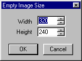 The Blank Image menu can be accessed from the main menu under File. Blank Image allows you to create a blank (white) screen image in a new VIS window. Upon selecting Blank Image, a dialog box will pop up allowing you to select the size of the new image.
