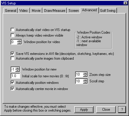 Automatically start video on VIS Startup will automatically start the video window when VIS starts. This feature is primarily used